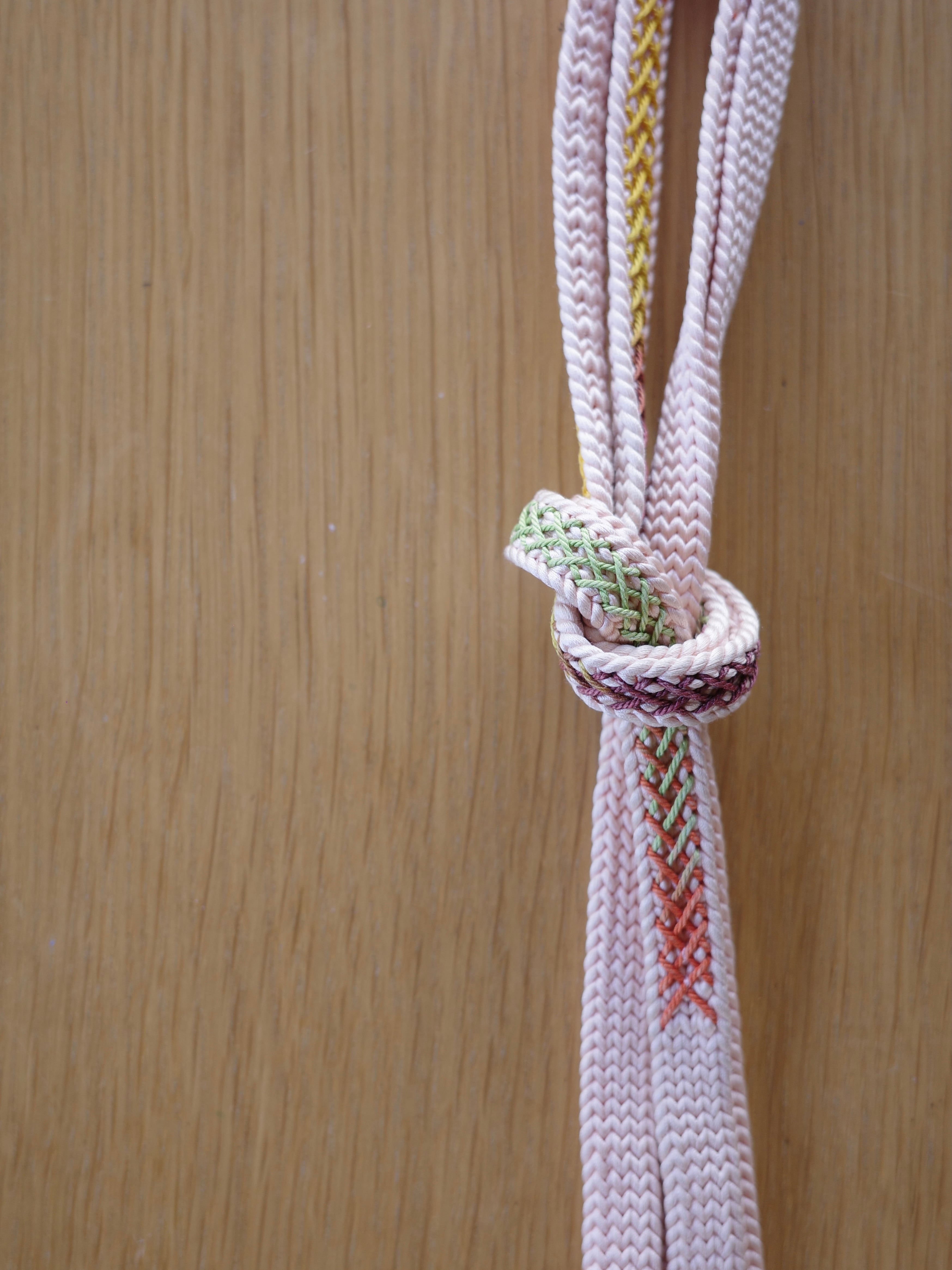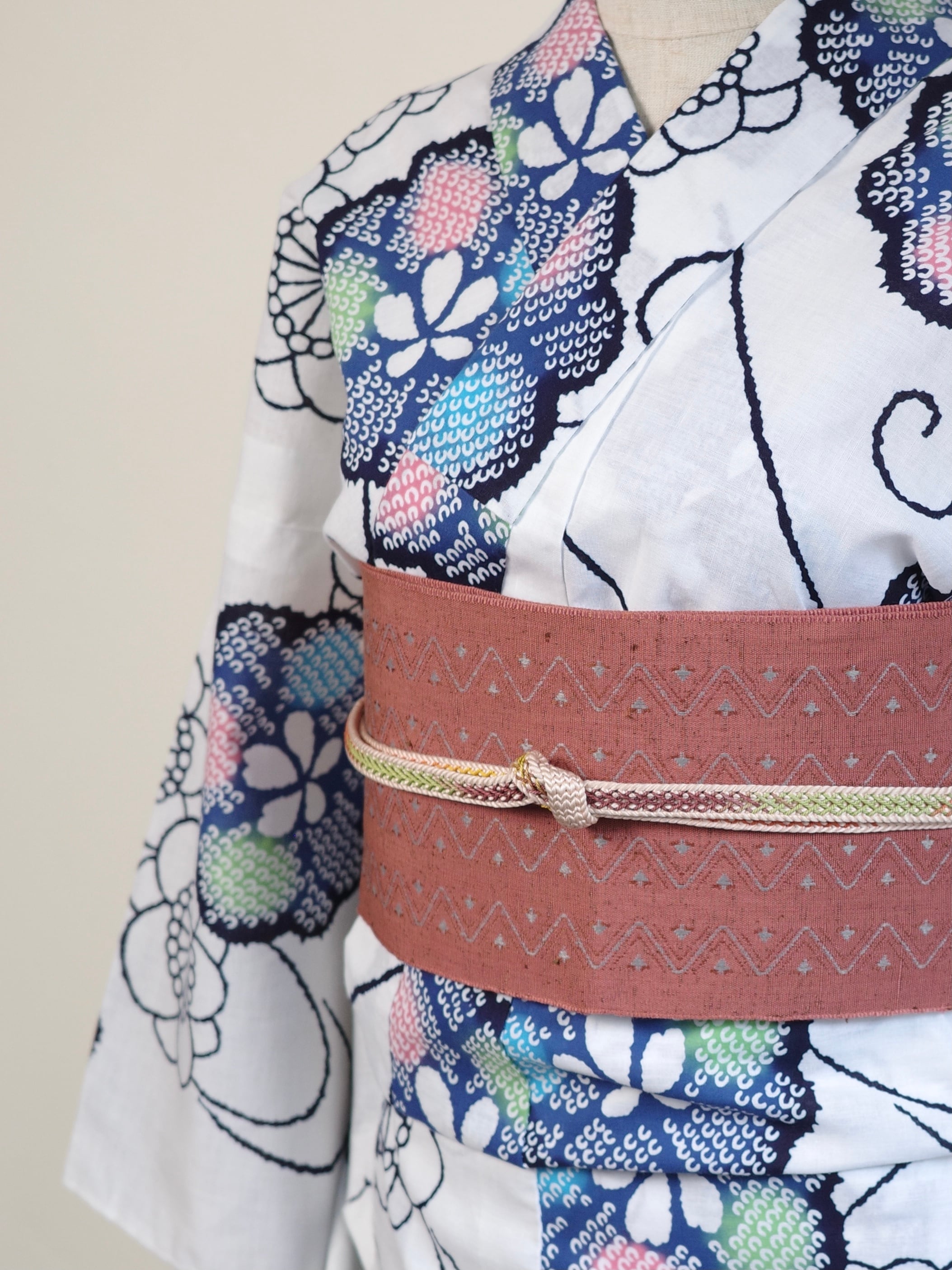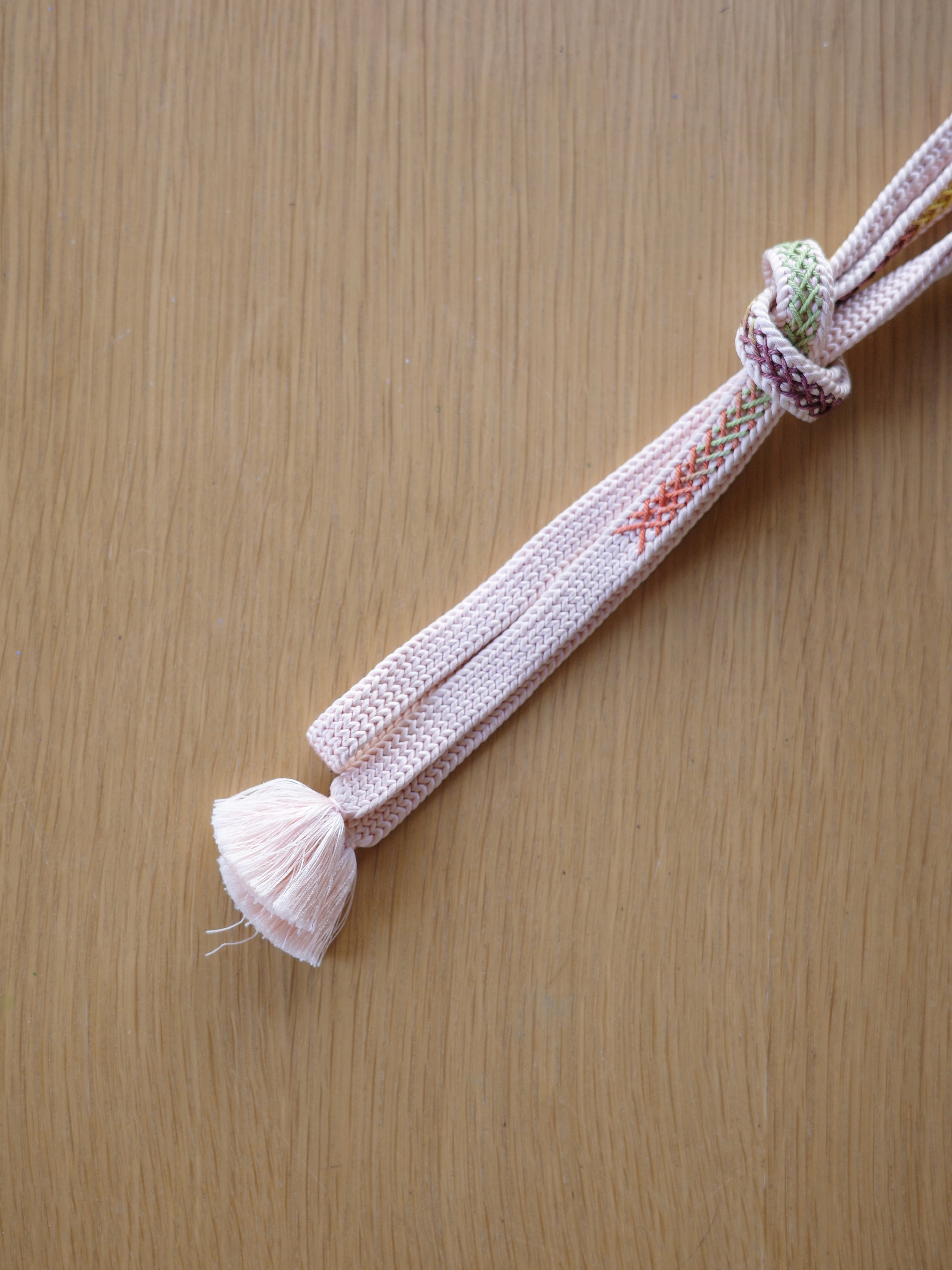 こういった柔らかい色味の帯締めは、全体の雰囲気を優しい印象にしてくれます。