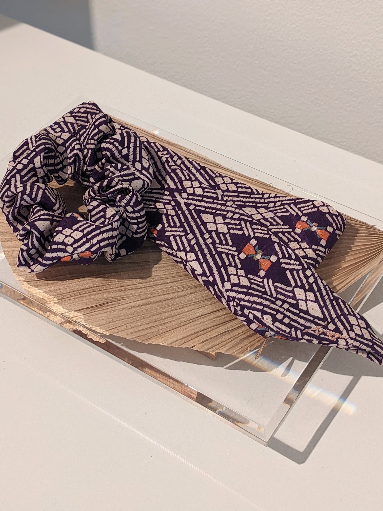 vintageやantiqueの着物生地を使ったシュシュ&スカーフのセット。